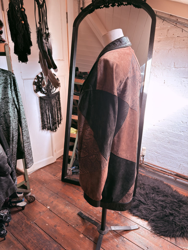 Bold, unapologetic and pure 80’s attitude. This animal print street style jacket is a true retro statement piece, featuring contrasting panels and a relaxed silhouette that captures iconic vintage edge.