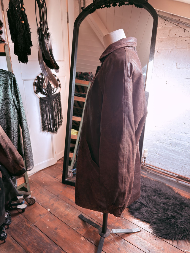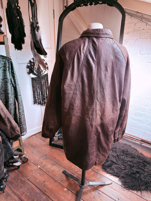 Brown Leather Jacket – Oversized 80’s Style (Size 42)